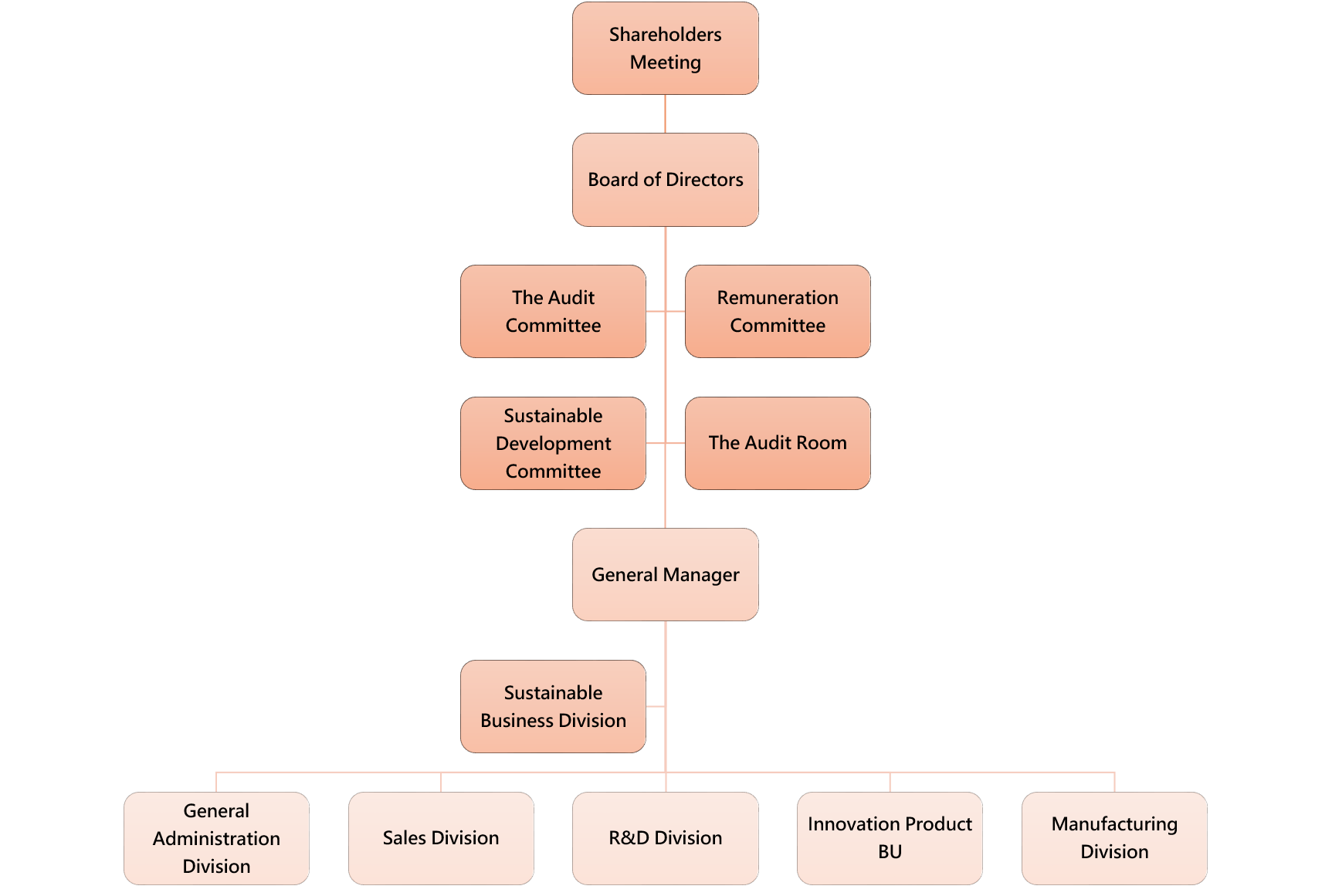 As the company’s ESG decision-making center, it is composed of one director, the President, and three senior executives. Together, they formulate the company’s corporate social responsibility and sustainability directions and objectives, and develop related management policies and specific implementation plans.